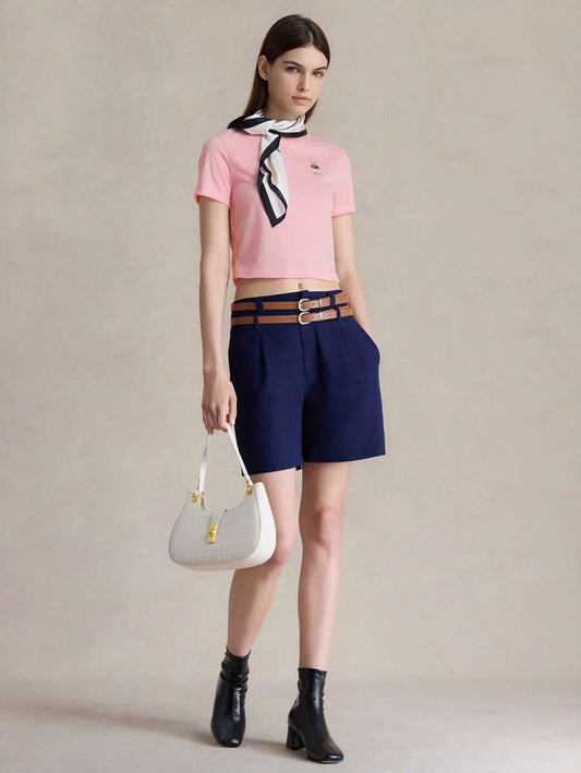 SHEIN EZwear Camiseta corta y ajustada de mujer de manga corta y cuello redondo con diseño minimalista casual