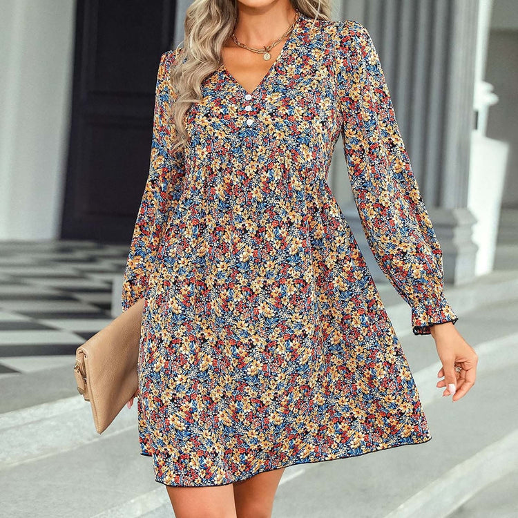 Elenzga Mono elegante de tela estampada con cintura envolvente, adecuado para vacaciones y uso diario
