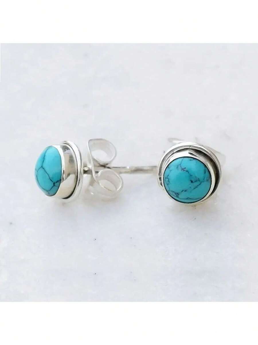 1 par de pendientes de tuerca vintage de turquesa redonda, regalo para mujeres y niñas para bodas, compromisos y fiestas