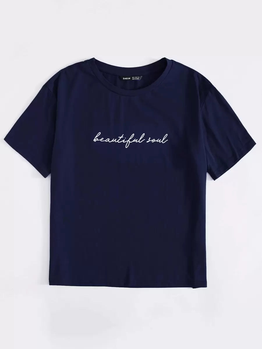 SHEIN EZwear Camiseta con estampa de eslogan "Alma hermosa"