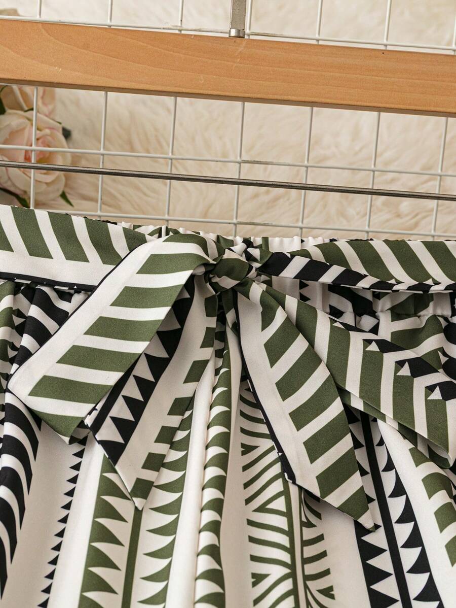 SHEIN LUNE Pantalones anchos de cintura elástica con estampado todo sobre para vacaciones informales