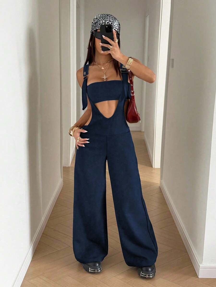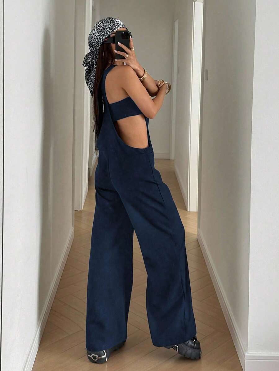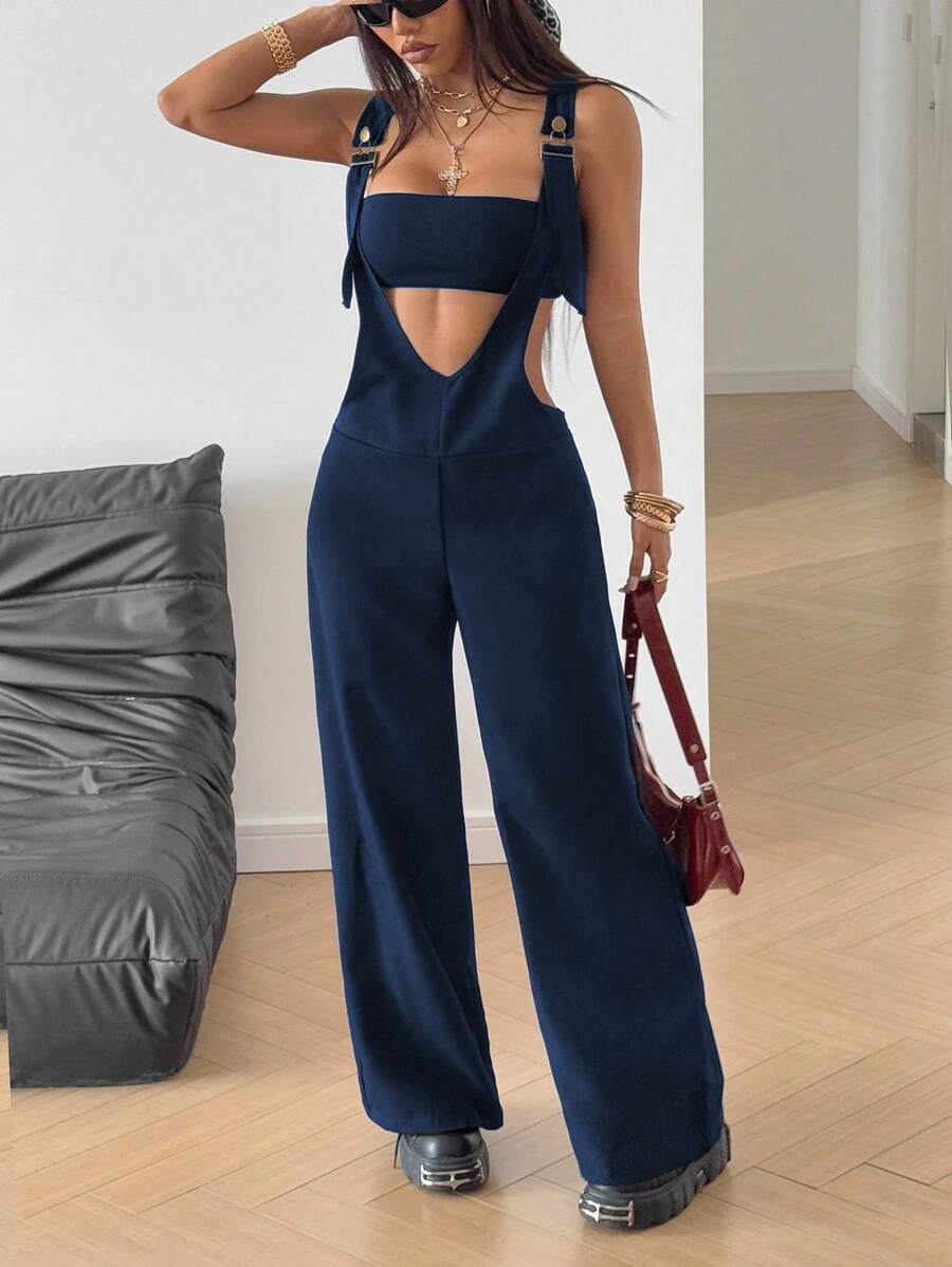 StreetHx Mono de mujer de unicolor con escote en V profundo y espalda descubierta