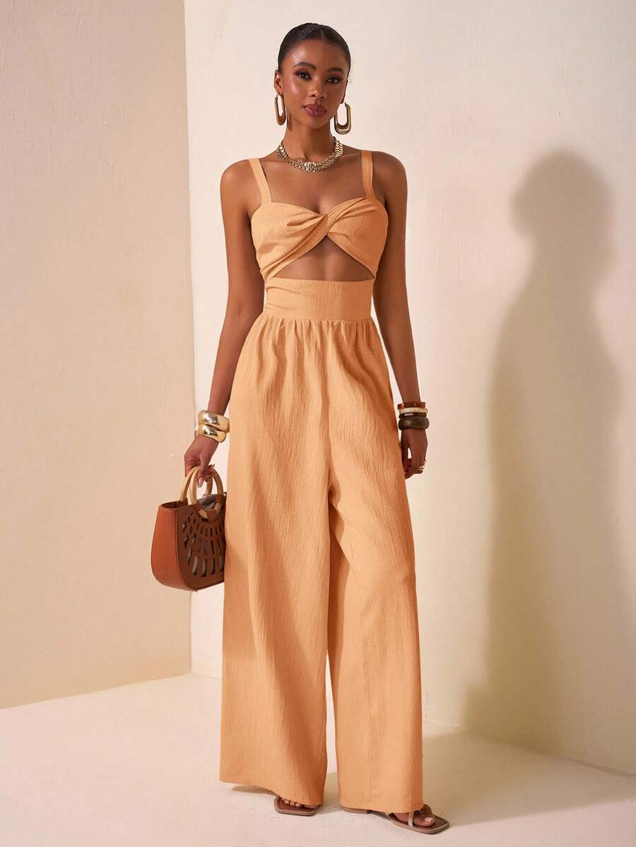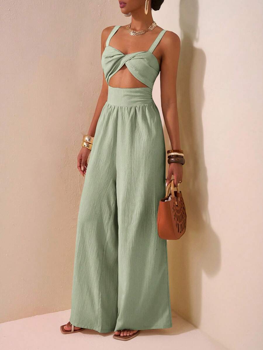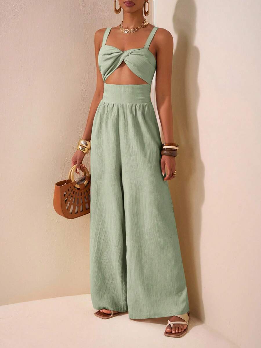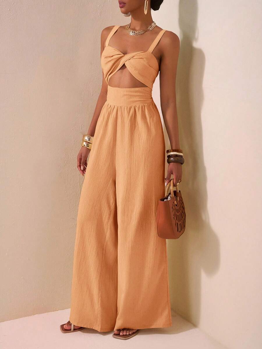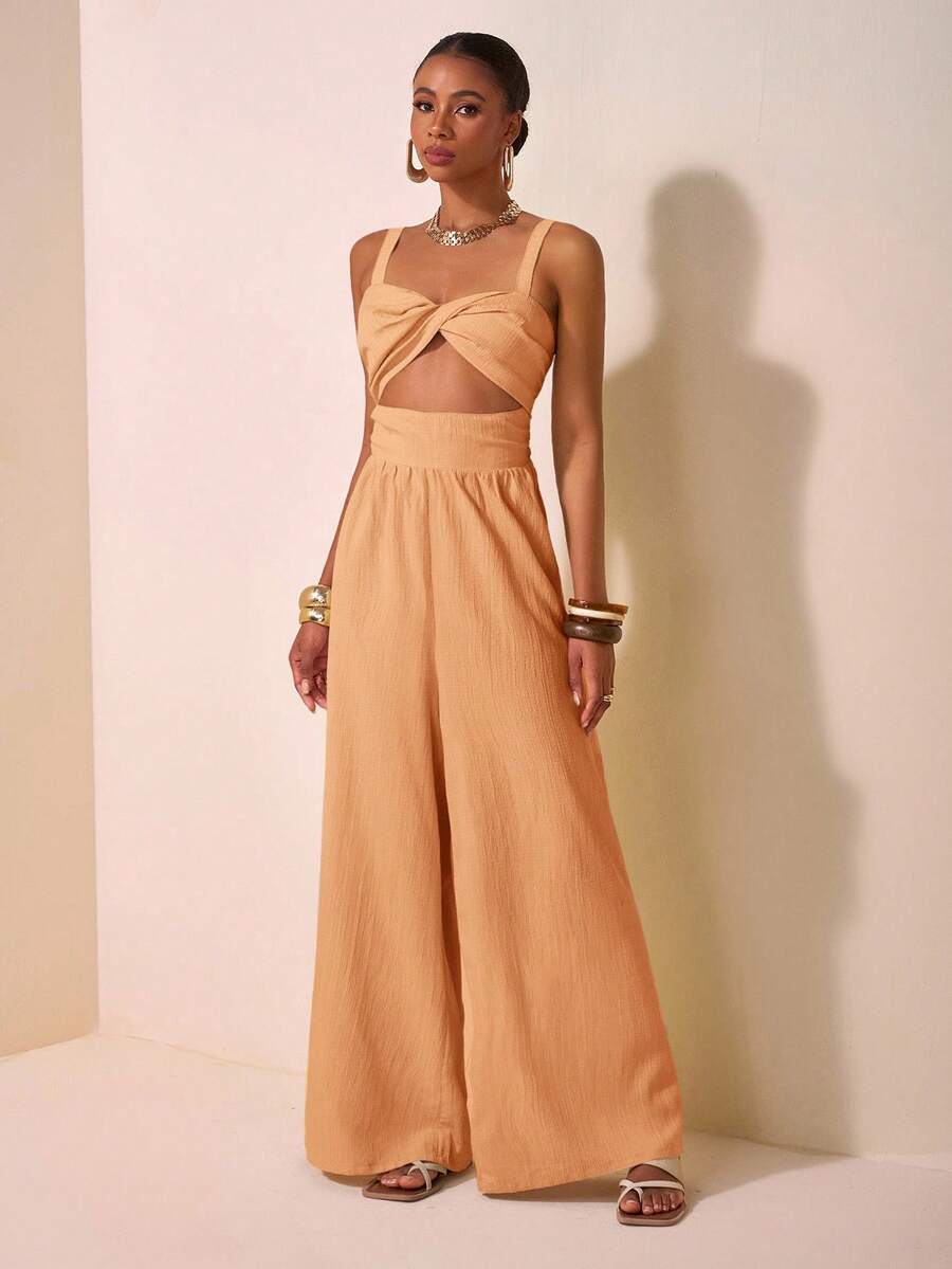 Zivah Pantalones anchos y largos de mujer con textura hueca retorcida de tela de 2025 para la temporada de primavera y verano, ocio y vacaciones, de color caqui, para boda, festival de música, fiesta, calle, playa y vacaciones, estilo bohemio-A